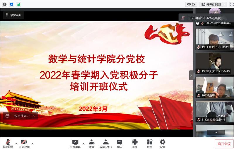 2022年春学期入党积极分子培训班顺利开班