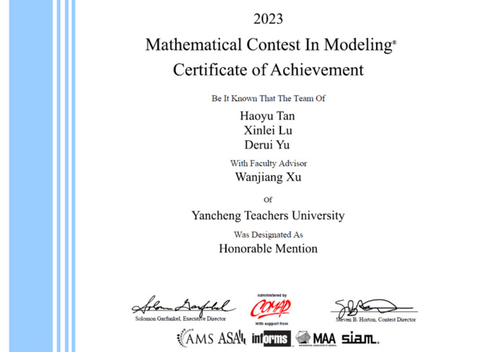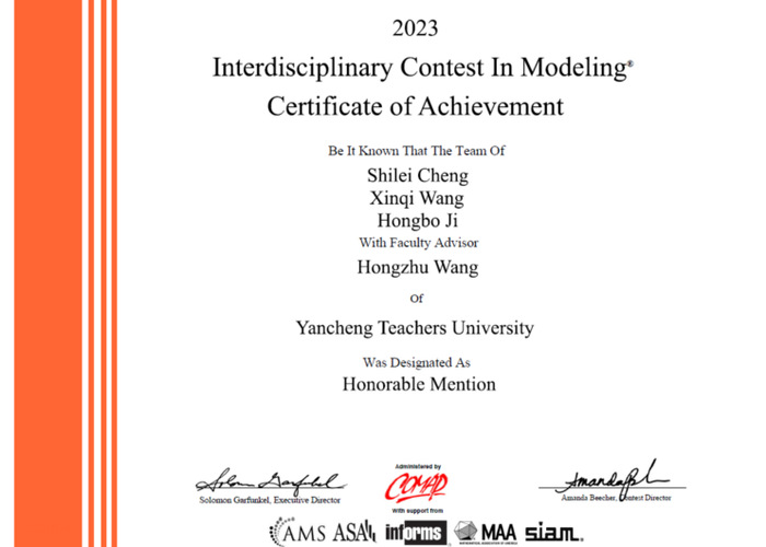 近日,2023年美国老员工数学建模竞赛(MCM/ICM)成绩结果正式公布。本次比赛betway西汉姆联官方官网9名同学组成共3支队伍参赛,2支队伍获得了国际二等奖(H奖),在此表示热烈祝贺!