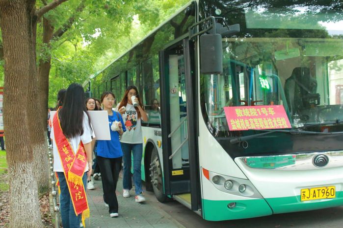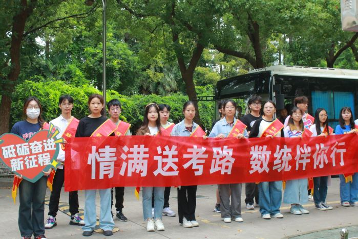 早上6点30分,四辆送考专车在通榆校区陈毅像前整装待发。公司全体学工人员、21级班主任老师逐一核对员工姓名与人数,叮嘱注意事项。低年级同学为考生们加油鼓劲,缓解紧张情绪。7点整,搭载着265名考生的送考专车准时出发,陆续前往分布在本市的各个考点,确保每位同学提前到达、顺利考试。