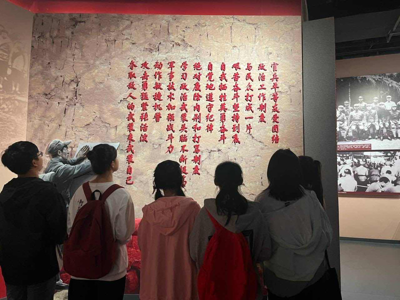 数23(4)数学S孟舒楠同学表示:“当我看到新四军的作战武器、了解到那段物资匮乏的历史,我认识到我们不能只沉溺于现在的幸福安逸,更要缅怀和继承先烈的遗志,将他们的精、气、神在我们身上不断延续。肩负起开创新世纪的使命,挥洒赤诚的汗水,创建繁荣昌盛的祖国。”