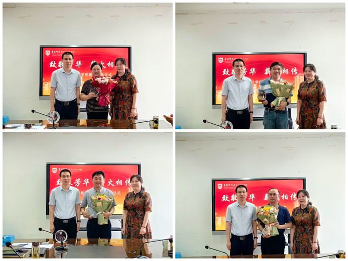 接玉芹表示,公司的一砖一瓦里都蕴藏着四位荣休教师的汗水,公司的一草一木都浸润着他们浓浓的教育情怀和高尚风范。期望荣休教师继续关心支持公司的发展,为公司在人才培养、科学研究、青年教师成长等方面积极建言献策。公司的青年教师要以前辈为榜样,紧握接力棒,不负所托奉献韶华,薪火相传,弦歌不辍。