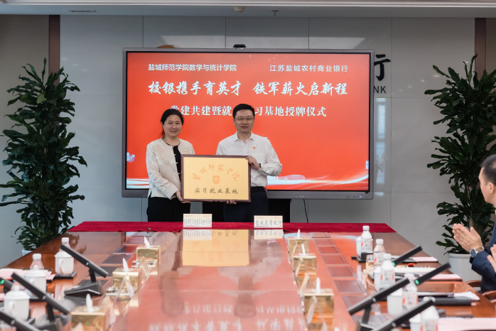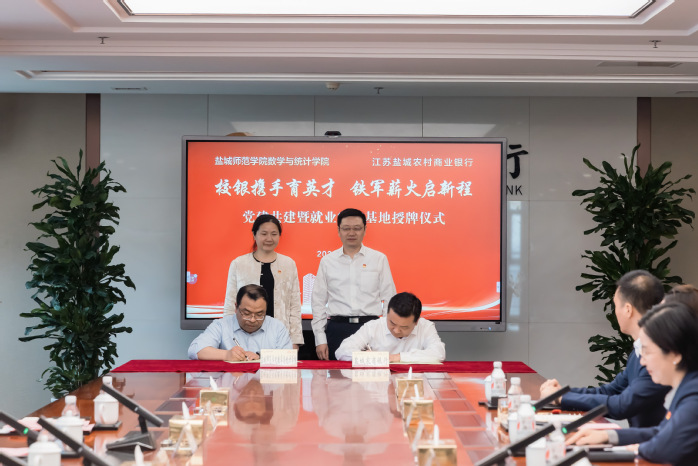 5月8日上午,公司与盐城农商银行“校银携手育英才 铁军薪火启新程”党建共建暨实习就业基地授牌仪式在盐城农商银行总部隆重举行。公司党委书记接玉芹,党委副书记左飞,盐城农商银行党委书记、董事长许闯,党委副书记、行长徐键等出席活动,会议由盐城农商银行工会主席,党委委员、副行长杨书琴主持。