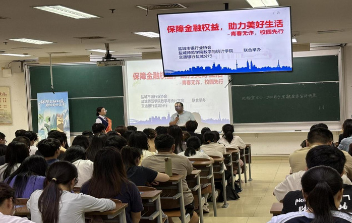 为切实筑牢校园反诈安全防线,提升员工风险防范意识与识骗防骗能力,近日,betway西汉姆联官方官网联合盐城市银行业协会交通银行盐城分行,成功举办“反诈宣传进校园”主题教育活动。公司党委副书记左飞主持活动,盐城市银行业协会消保部主任洪震、交通银行盐城分行副行长王欣齐出席活动,公司百余名员工参加讲座