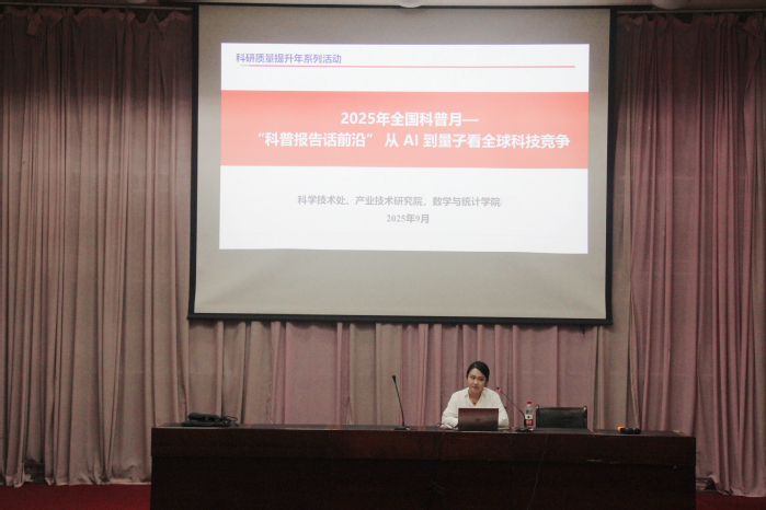 为深入贯彻落实盐城市科普月“提升全民科学素质 夯实科技强国基础”的工作部署,持续深化校地科普资源整合与协同育人机制建设,9月29日晚,数统院特邀盐城市科技馆馆长助理孙宇雯,开展以“量子计算和人工智能”为核心的主题报告,近400名师生参与,现场座无虚席,互动氛围热烈。