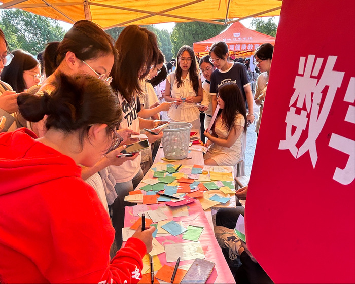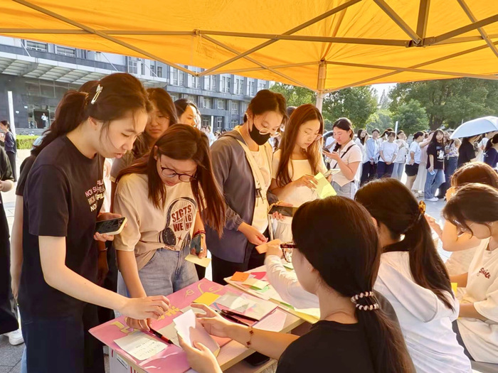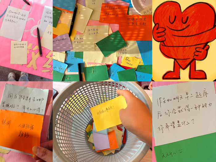 本次活动围绕三大核心环节展开,兼顾实用性与趣味性,让心理健康教育更贴近员工生活。在“情绪树洞”环节,同学们在纸条上写下学业焦虑、生活困扰等负面情绪,将其投入专属垃圾桶,以“丢弃”的形式释放心理压力;后续心理委员还会整理共性问题,通过线上推送分享专业解决建议,让情绪疏导不止于现场。在“请与我击掌”环节,大家用喜欢的颜料在卡纸上,与同伴共同留下相重合的手印,色彩交织的“手印约定”不仅传递着朋辈间的支持力量,更象征着携手守护心理健康的共同承诺。而“心理知识小问答”环节,则通过随机抽取情绪调节方法、精神卫生常识等题目,让员工在轻松答题中掌握实用心理知识,将理论融入日常。