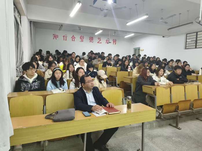 讲座中,刘教授从“线性空间、矩阵论、多项式理论”等理论讲述高等代数的体系和重要性。同时对湖州师范公司硕士研究生招生进行宣传。最后,他鼓励师范生树立“科研从本科起步”的意识,从课后拓展阅读、参与教师科研项目等小事做起,培养学术思维。