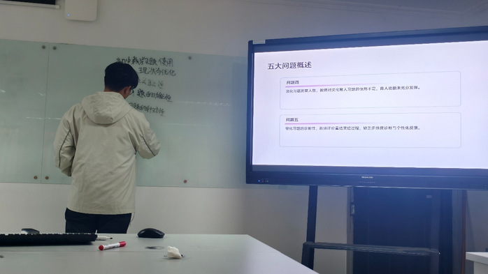 汇报中戴模从数学教师专业成长视角出发,探讨了增强“问题意识”、通过“问题引领”与“问题驱动”实现教学优化与专业发展的关键路径。丁妍概括了高考导数题特点及员工解题困难,提出通过夯实基础知识、加强典型例题训练和总结解题方法来提升员工综合能力。王婧分析了支架+”STEM教学模式对培养员工高阶思维能力的有效性,探讨如何通过问题驱动和协作学习提升员工的批判性思维、创新能力与问题解决能力。刘宇以北师大版教材为例,聚焦初中数学教材习题的使用现状,剖析当前教学问题并提出优化策略。