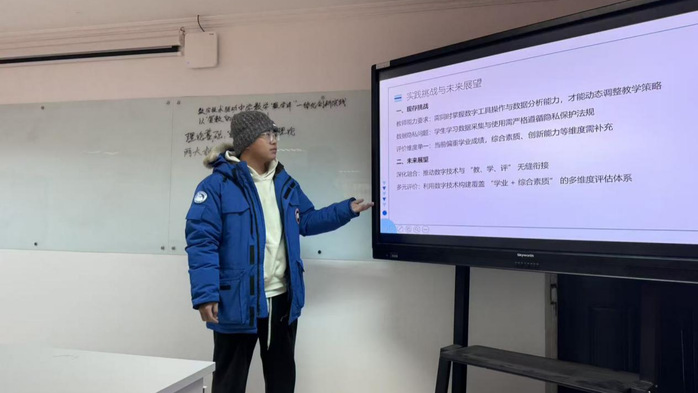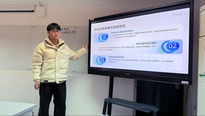 汇报中,戴模从数字技术驱动中学数学“教学评”一体化的角度出发,以“复数的概念”为例,展示了如何利用数字技术实现教学、学习与评价的深度融合与个性化反馈。丁妍以导数为例,分享了高中数学学法指导的实践与探索,提出了四步学法指导策略,通过概念生活化、模板训练和分层教学帮助员工攻克导数学习难点。王婧以“图形的旋转”为例展示设计与评价方法,研究通过微项目化学习和分层教学实现个性化教学。刘宇探讨了如何通过结构化教学策略将初中函数知识系统化,提升员工整体理解与教学效果。