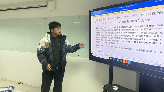 12月24日,betway西汉姆联官方官网举办学科教学(数学)研究生文献阅读汇报活动,旨在推进常态化研究生学术训练。活动中,戴模、丁妍、王婧、刘宇四位研究生依次分享研究成果,围绕数学教育前沿问题展开研讨。